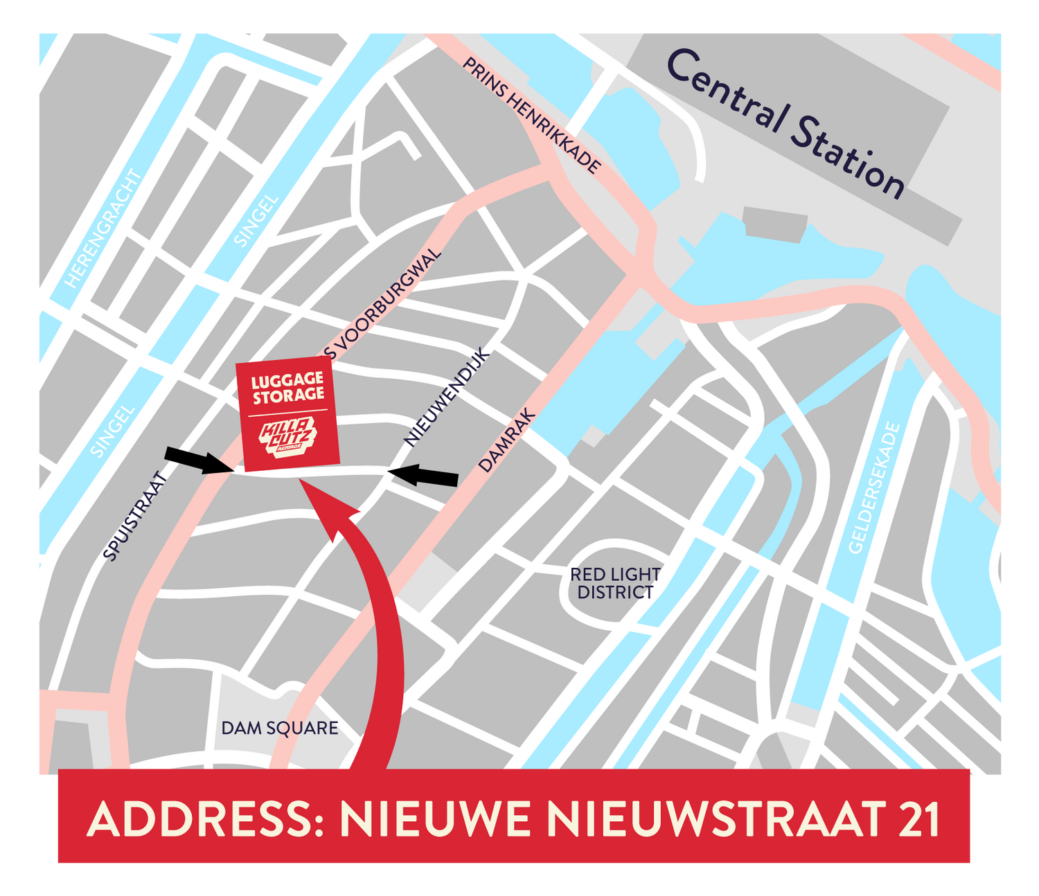 DIRECTIONS: You'll find our store between Central Station and Dam square. Follow Nieuwezijds Voorburgwal, Nieuwendijk or Damrak and enter the Nieuwe Nieuwstraat. You find us at nr 21.